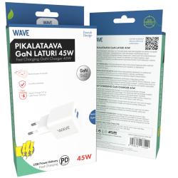 Wave 45W Pikalataava GaN -verkkolaturi, 1 x USB Type-C + 1 x USB-A, Valkoinen