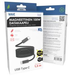 Wave Punottu magneettinen 100W datakaapeli, USB Type-C -> USB Type-C (480 Mbps), 1,5m, Musta