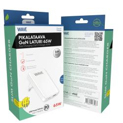 Wave Slim 65W Pikalataava GaN -verkkolaturi, 1 x USB Type-C + 1 x USB-A, Valkoinen