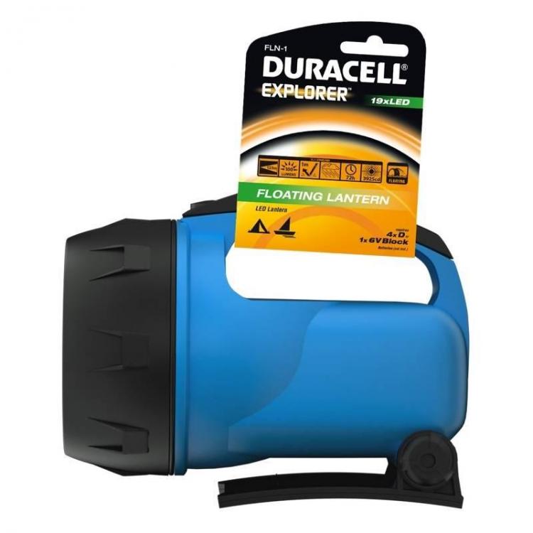 DURACELL EXPLORER FLN-1 Sininen. Roisketiivis, kelluva käsivalaisin. Erittäin tehokas ja kestävä valaisin esim. veneilyyn sekä retkeilykäyttöön. Toimii 4 x D paristolla (ei sis.) 19 x LED, 26h.
