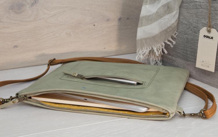 *Golla AIR Tablet Sleeve G1644, Aqua, vaal.vihreä. Max 10,1". Vetoketjulla. Sivussa pikkutasku vetoketjulla. Sisältä kangasta, jossa kaksi puolta. Mukana ruskea olkahihna. Ulkomitat:220x300mm