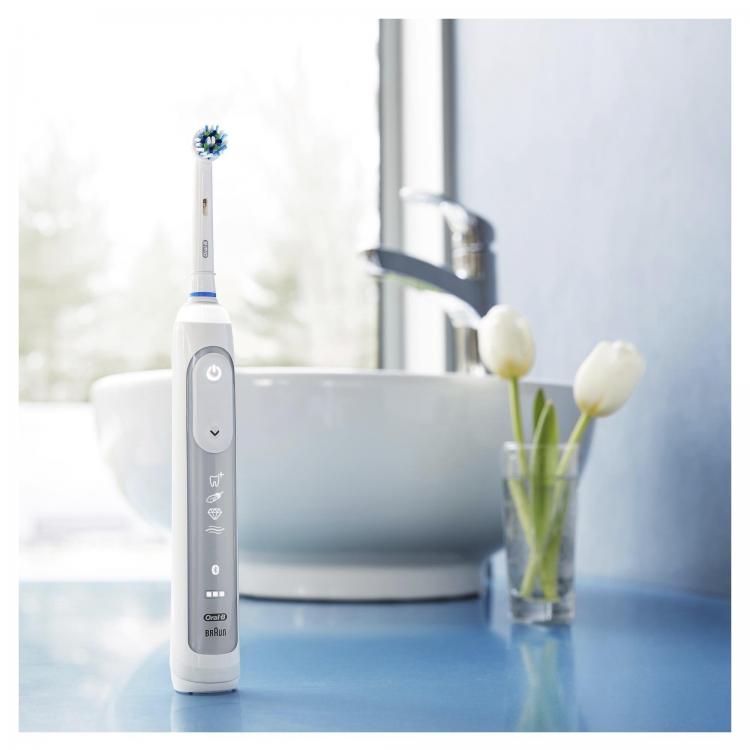 Genius on Oral-B:n paras sähköhammasharjateknologia. Oral-B Genius 8000N Silver on intuitiivinen harjausjärjestelmä, joka auttaa harjaamaan hammaslääkärien suosittelemalla tavalla. Ainutlaatuinen paikannusteknologia auttaa harjaamaan joka puolelta ja Oral-B:n ainutlaatuinen pyöreä pää hoitaa loput. Genius poistaa jopa 100 % enemmän plakkia kuin tavallinen käsikäyttöinen hammasharja. Se antaa terveemmät ikenet ja valkoisemman hymyn ensimmäisestä päivästä lähtien poistamalla pinnallisia värjäytymiä. Lisäksi hammasharja auttaa suojaamaan herkkiä ikeniä patentoidun SmartRing-toiminnon ansiosta ja paineentunnistusteknologia hidastaa hammasharjan liikkeitä ja hälyttää, jos harjaat liian kovaa. Oral-B Genius 8000N-sähköhammasharjalla et voi epäonnistua harjauksessa. Ei ihme, että Oral-B on maailmanlaajuisesti hammaslääkäreiden eniten suosittelema hammasharjamerkki. Oral-B Genius 8000N-sähköhammasharja on yhteensopiva seuraavien harjaspäiden kanssa: CrossAction, 3D White, Sensi Ultrathin, Sensitive Clean, Precision Clean, Floss Action, Tri Zone, Dual Clean, Power Tip, Ortho Care.