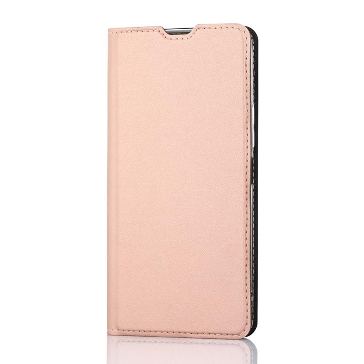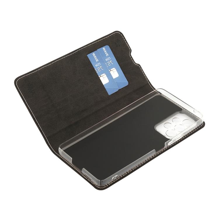 Wave Book Case ruusukultainen suojakotelo Samsung Galaxy A53 5G puhelimelle. Magneettisulkuinen kansi, korttipaikat RFID suojauksella ja läpinäkyvä muovikelkka (PC). Pintamateriaali laadukasta nahkaa.