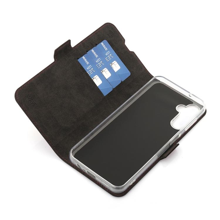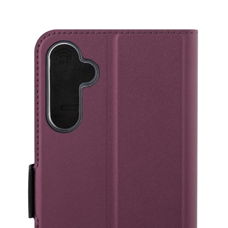 Wave Book Case smoky sangria suojakotelo Samsung Galaxy A14 4G puhelimelle. Magneettisulkuinen kansi, korttipaikat RFID suojauksella ja läpinäkyvä muovikelkka (TPU). Pintamateriaali laadukasta nahkaa, jossa antimikrobipinnoite.