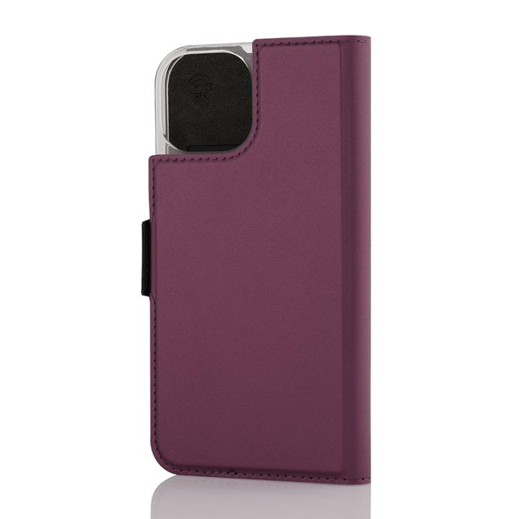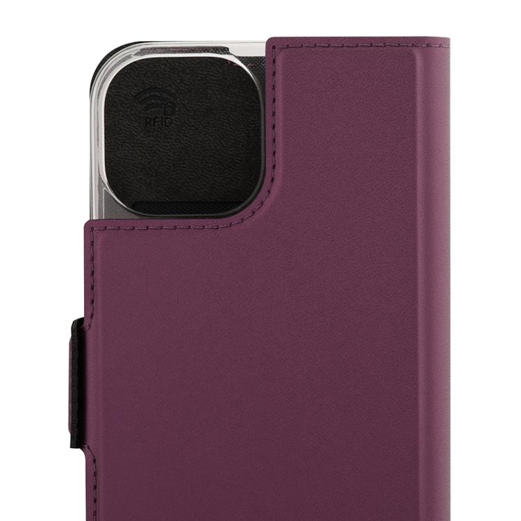 Wave Book Case smoky sangria suojakotelo Apple iPhone 15 puhelimelle. MagSafe-yhteensopiva. Magneettisulkuinen kansi, korttipaikat RFID suojauksella ja läpinäkyvä muovikelkka (PC). Pintamateriaali laadukasta nahkaa, jossa antimikrobipinnoite.