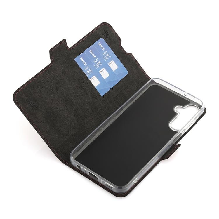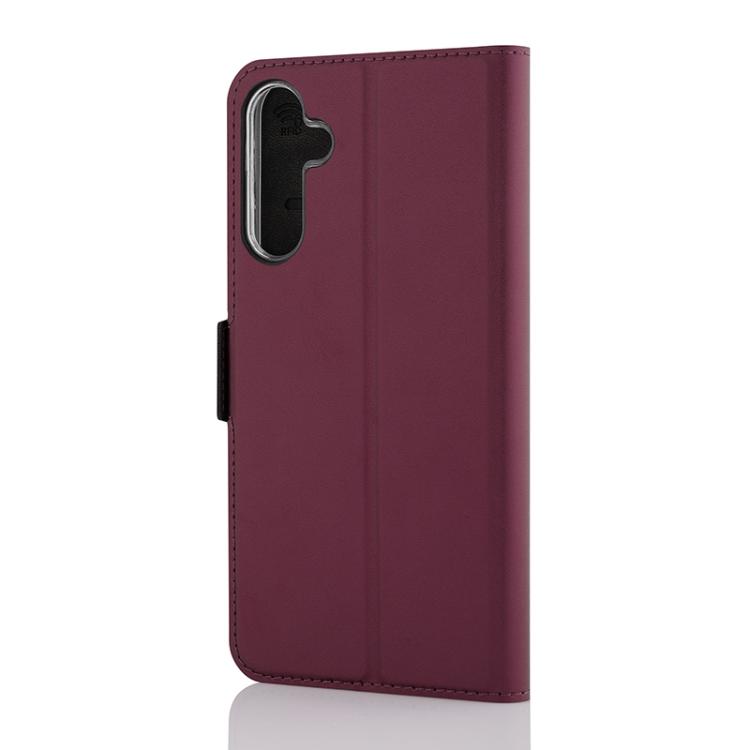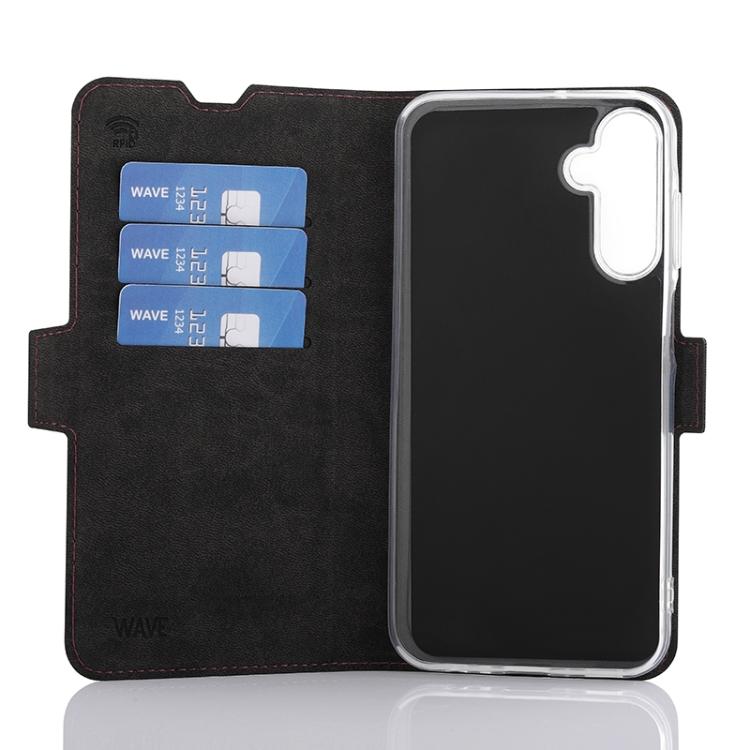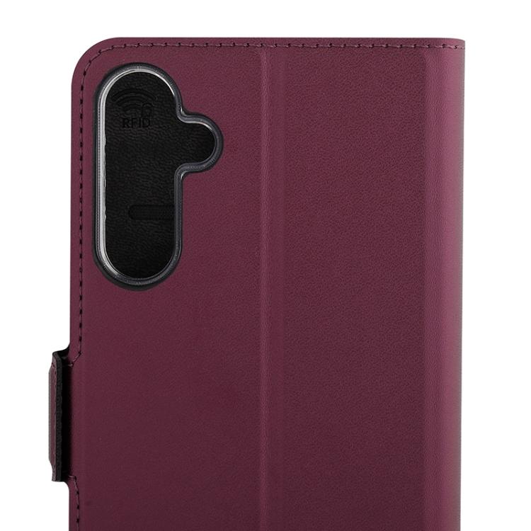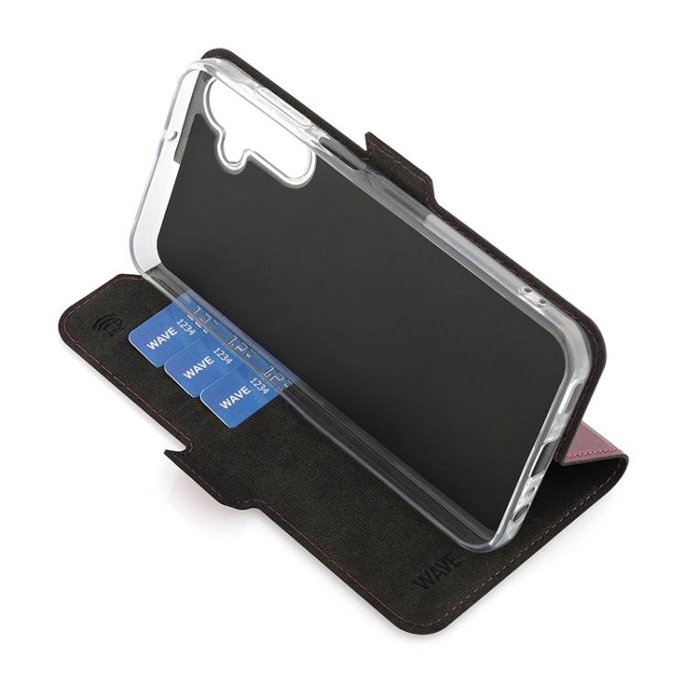 Wave Book Case smoky sangria suojakotelo Samsung Galaxy A15 5G, Samsung Galaxy A15 4G puhelimille. Magneettisulkuinen kansi, korttipaikat RFID suojauksella ja läpinäkyvä muovikelkka (TPU). Pintamateriaali laadukasta nahkaa, jossa antimikrobipinnoite.