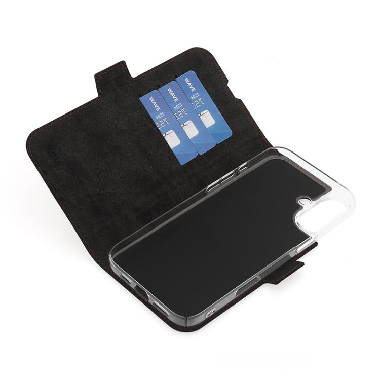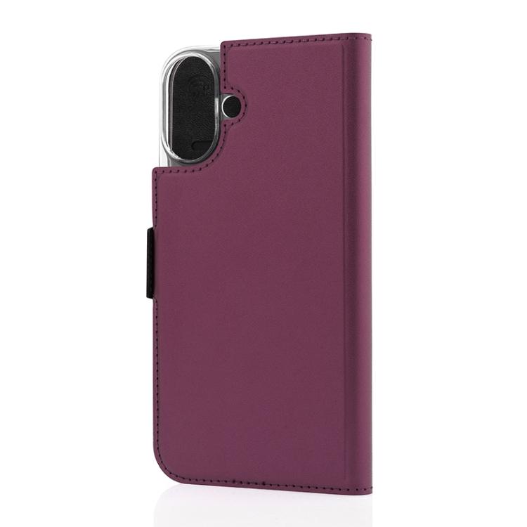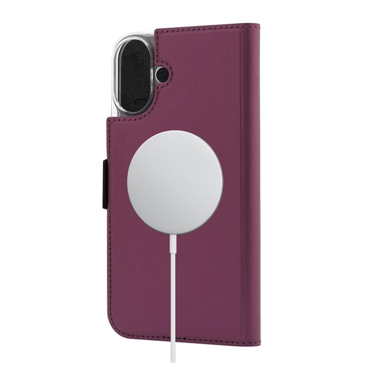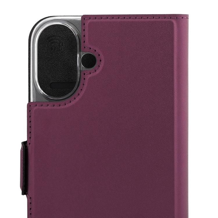 Wave Book Case smoky sangria suojakotelo Apple iPhone 16 Plus puhelimelle. MagSafe-yhteensopiva. Magneettisulkuinen kansi, korttipaikat RFID suojauksella ja läpinäkyvä muovikelkka (PC). Pintamateriaali laadukasta nahkaa, jossa antimikrobipinnoite.