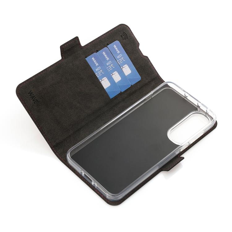 Wave Book Case smoky sangria suojakotelo OnePlus Nord 5 5G puhelimelle. Magneettisulkuinen kansi, korttipaikat RFID suojauksella ja läpinäkyvä muovikelkka (TPU). Pintamateriaali laadukasta nahkaa, jossa antimikrobipinnoite.