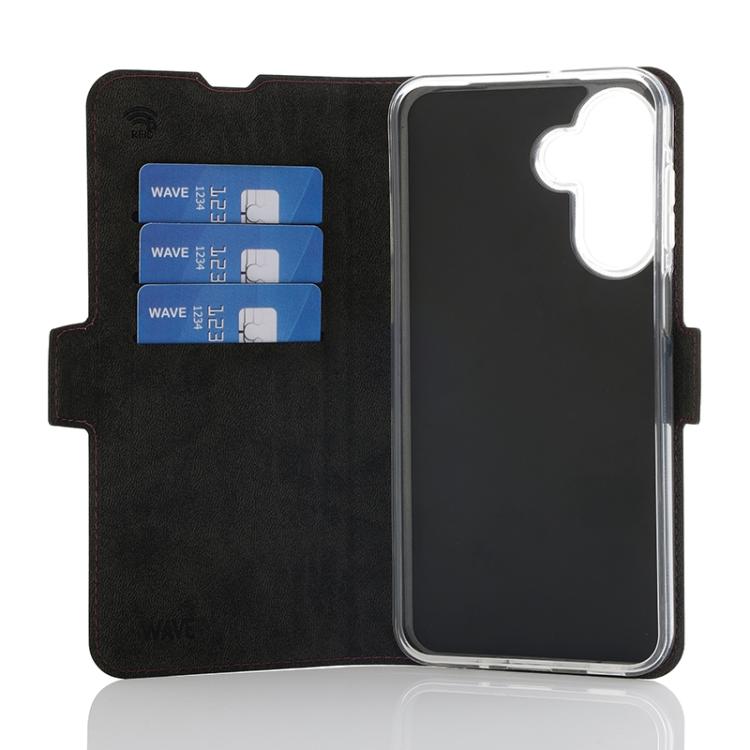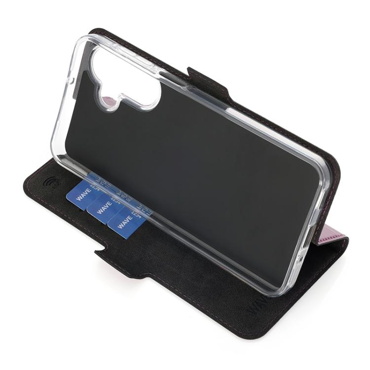 Wave Book Case smoky sangria suojakotelo Samsung Galaxy A17 5G, Samsung Galaxy A17 4G puhelimille. Magneettisulkuinen kansi, korttipaikat RFID suojauksella ja läpinäkyvä muovikelkka (TPU). Pintamateriaali laadukasta nahkaa, jossa antimikrobipinnoite.