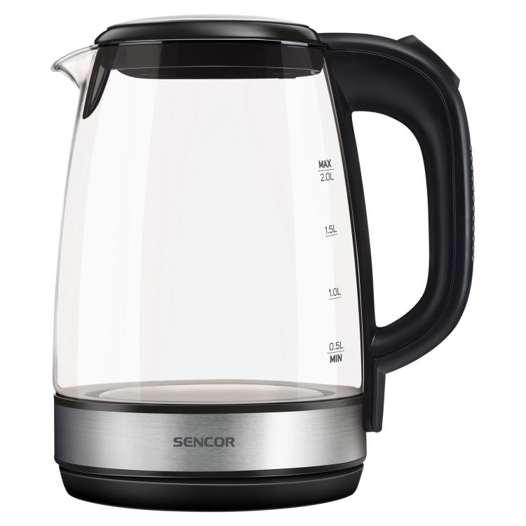 SENCOR SWK2080BK VEDENKEITIN KIRKAS. Tyylikäs 2,0 L lasinen vedenkeitin tehokkaalla 2200 W teholla. LED-valaistus, 360° liitin ja helppo käyttö tekevät arjesta sujuvaa. Turvatoiminnot ja kalkkisuodatin varmistavat turvallisuuden.