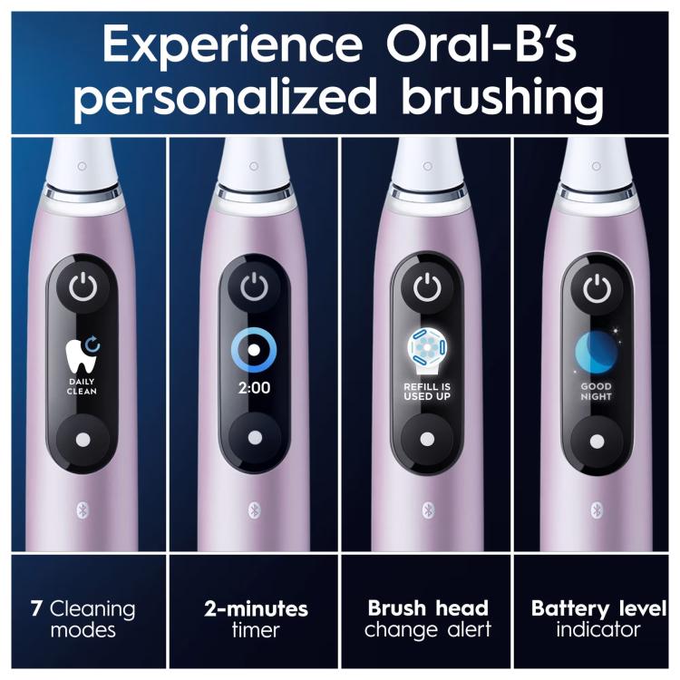 ORAL-B SÄHKÖHAMMASHARJA iO9 ROSE QUARTZ. Nauti hampaiden ammattimaisesta hoidosta Oral-B iO 9s -sähköhammasharjalla. Se käyttää edistyksellisiä ominaisuuksia, kuten 3D- hampaiden seurantaa, tekoälyä ja iO-teknologiaa. 7 harjaustilaa ja paineanturi