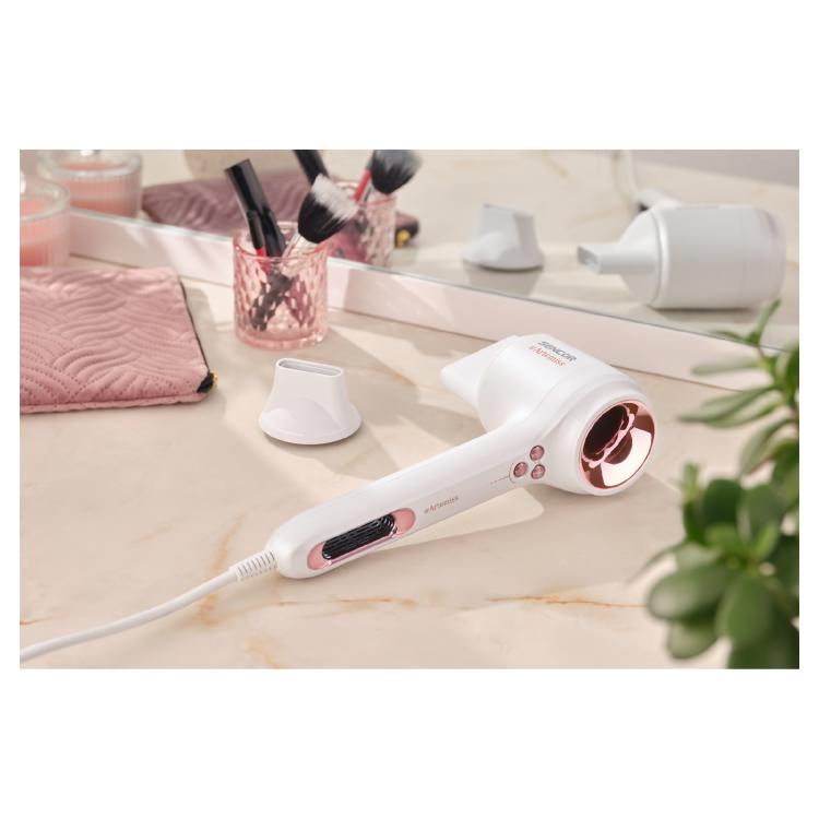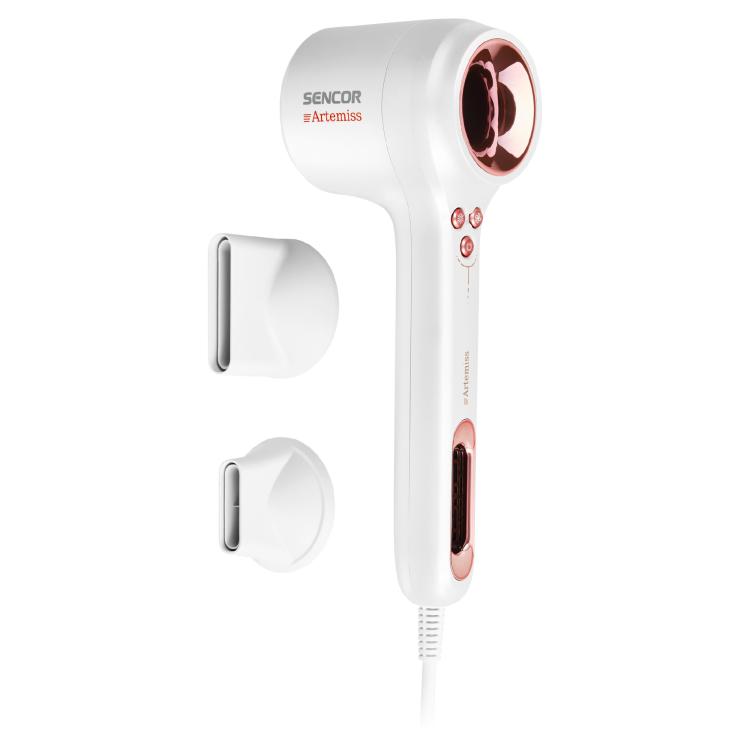 SENCOR SHD9100RS ARTEMISS HIUSTENKUIVAIN. Hiustenkuivain tarjoaa 100 000 rpm BLDC-moottorin ja 1500 W tehon nopeaan kuivaamiseen. Ionisaatio, 3 nopeutta ja 4 lämpötilaa takaavat sileän, kiiltävän ja ammattitasoisen lopputuloksen.
