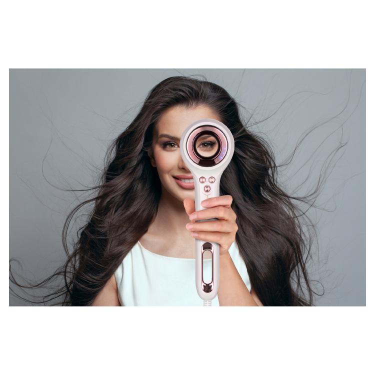 Voimakas ionisaatio takaa uskomattoman sileät, ravitut ja kiiltävät hiukset. Pakkaus sisältää kaksi magneettista muotoilulisäosaa helppoa kiinnittämistä ja vaihtamista varten muotoilun aikana, sekä helppoa huoltoa ja puhdistusta varten on helposti irrotettava suodatin.