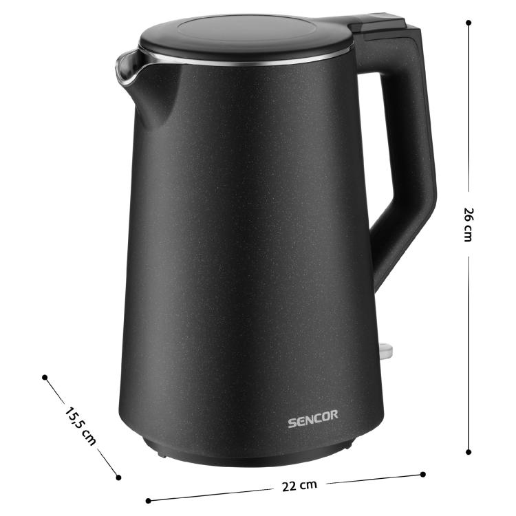 SENCOR SWK0551BK VEDENKEITIN MUSTA. Tehokas 2200 W vedenkeitin nopeaan käyttöön. 1,7 l tilavuus, kaksiseinäinen rakenne ja viileä ulkopinta takaavat turvallisuuden. Laadukas terässäiliö, STRIX-liitin ja helppokäyttöiset toiminnot.