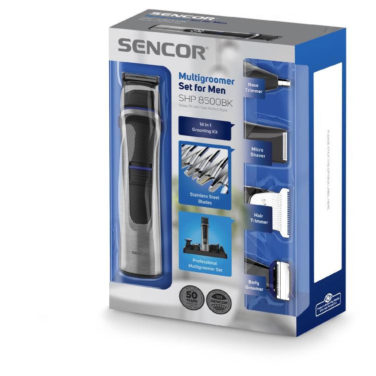 SENCOR SHP8500BK MONITOIMITRIMMERI. Monitoimitrimmeri tarjoaa 14 lisäosaa ja tehokkaan, hiljaisen moottorin tarkkaan viimeistelyyn. 60 min käyttöaika, pikalataus ja IPX5-vedenkestävyys tekevät siitä monipuolisen valinnan koko vartalon trimmaukseen.