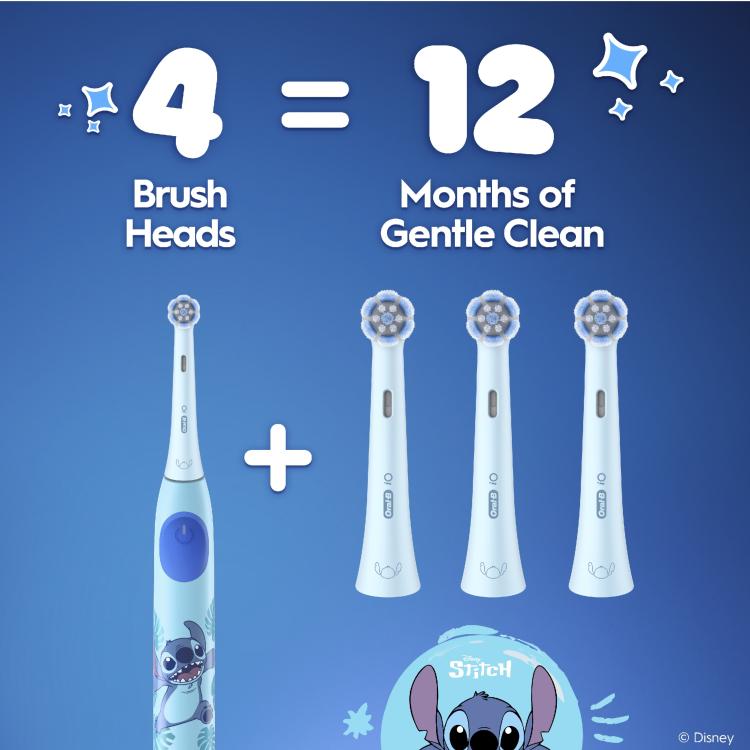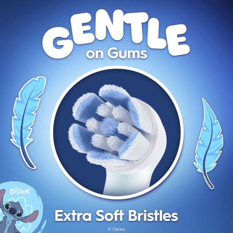 Yli 6-vuotiaille lapsille tarkoitettu Oral-B iO Kids -vaihtoharja ilahduttaa STICH-teemalla samalla, kun se puhdistaa hellävaraisen tehokkaasti hammaslääkäreiden suosittelemien Oral-B-hammasharjojen tapaan. Erittäin pehmeät harjakset ja pieni pyöreä pää on suunniteltu erityisesti lapsille. Ne ovat armottomia reikiintymiselle ja hellävaraisia ikenille ja heiluville hampaille.