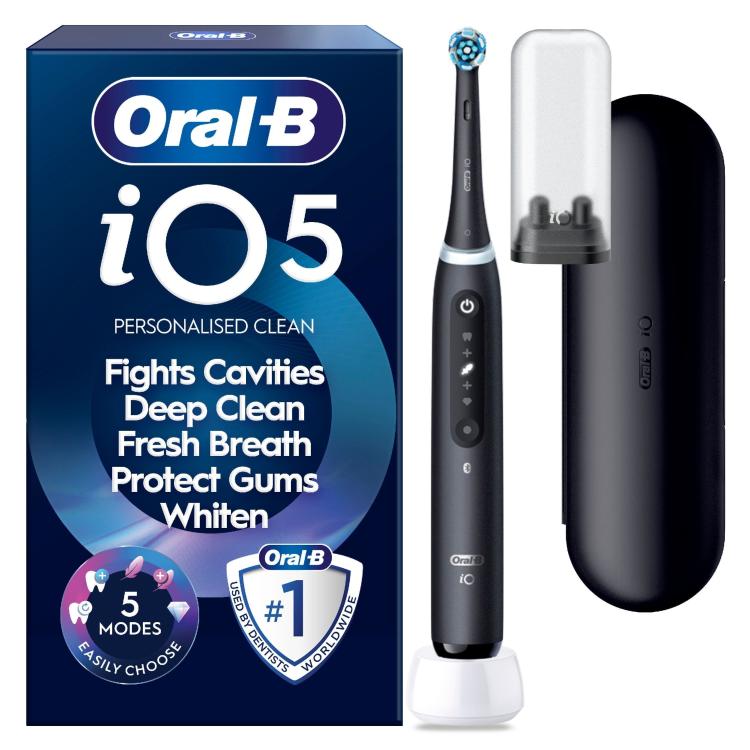 ORAL-B SÄHKÖHAMMASHARJA iO 5s BLACK. iO5 -sähköhammasharja hyödyntää Oral-B:n parasta tekniikkaa. Älykäs paineentunnistin auttaa harjaamaan oikealla paineella. Tekoälyavusteinen harjaustunnistin tunnistaa harjaustyylisi ja ohjaa harjaustasi.