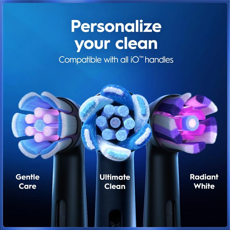 Oral-B iO on Oral-B:n KEHITTYNEIN TEKNOLOGIA, jossa on yksilöllisesti toimivat harjakset ja hammaslääkäreiden innoittama pyöreä harjaspää