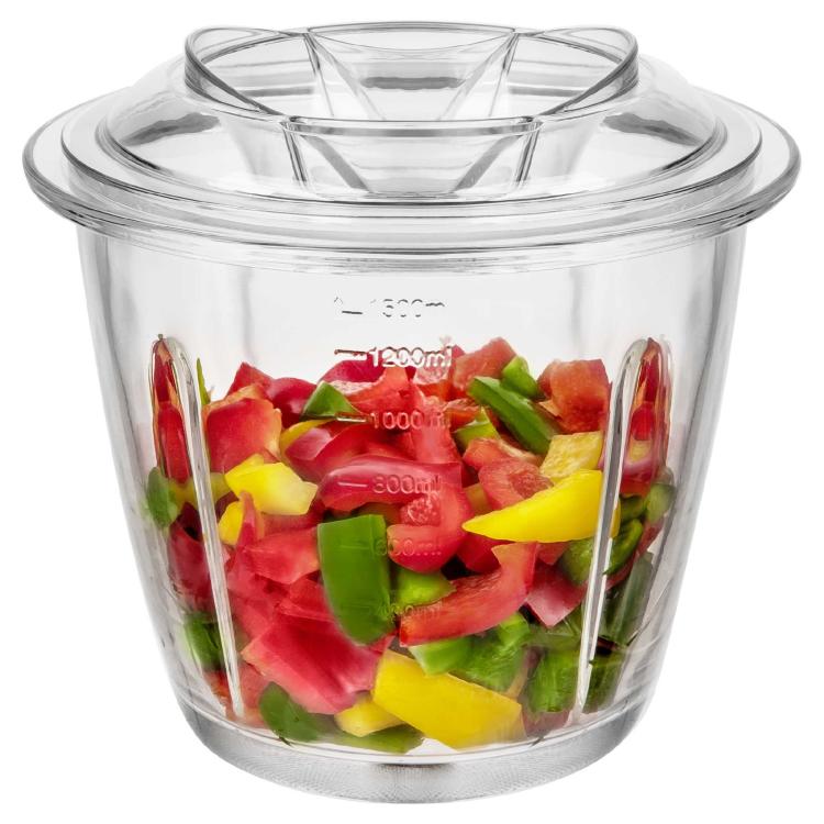. Suuri lasikulho (tilavuus 1 500 ml), soveltuu astianpesukoneeseen