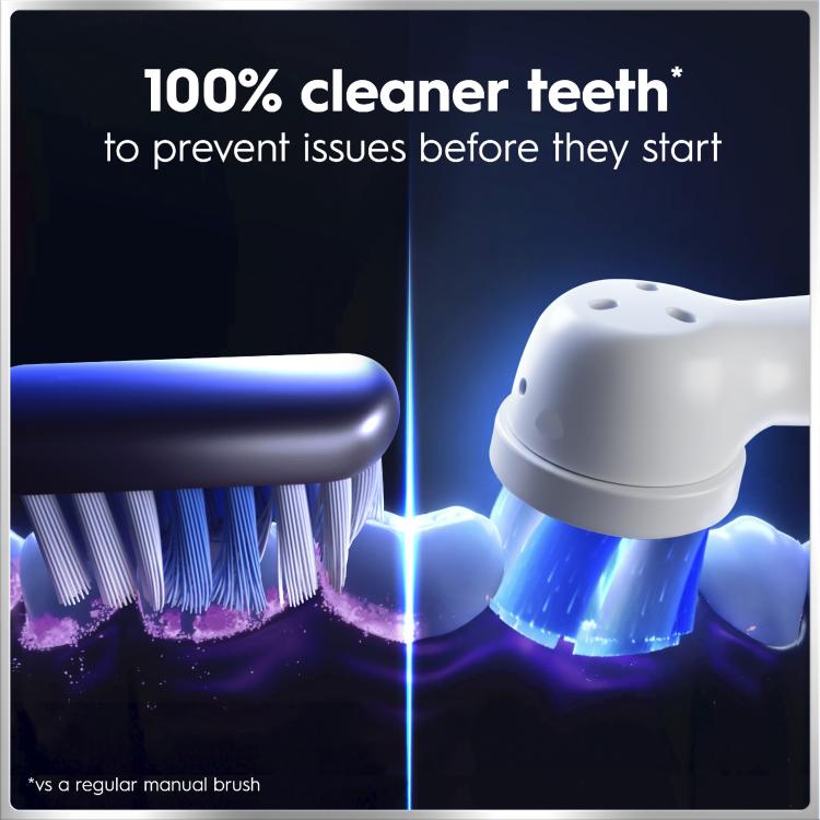 Oral-B iO 6 -sähköhammasharja käyttää Oral-B:n parasta puhdistusteknologiaa ja yhdistää ainutlaatuisen, hammaslääkärien innoittaman pyöreän harjaspään hellävaraiseen mikrovärähtelyyn antaen ammattimaisen puhtaan tunteen joka päivä. Kliinisesti todistettu teknologia. Suunniteltu ehkäisemään ongelmia ennen kuin ne alkavat. Lataa ORAL-B-sovellus, niin voit seurata aikaa ja harjausaluetta sekä varmistaa, ettei yksikään kohta jää harjaamatta. Synkronoi Apple Health -sovelluksen kanssa ja seuraa keskimääräistä harjausaikaasi joka päivä. Vaihda harjaspää 3 kuukauden välein parhaan puhdistustehon säilyttämiseksi.